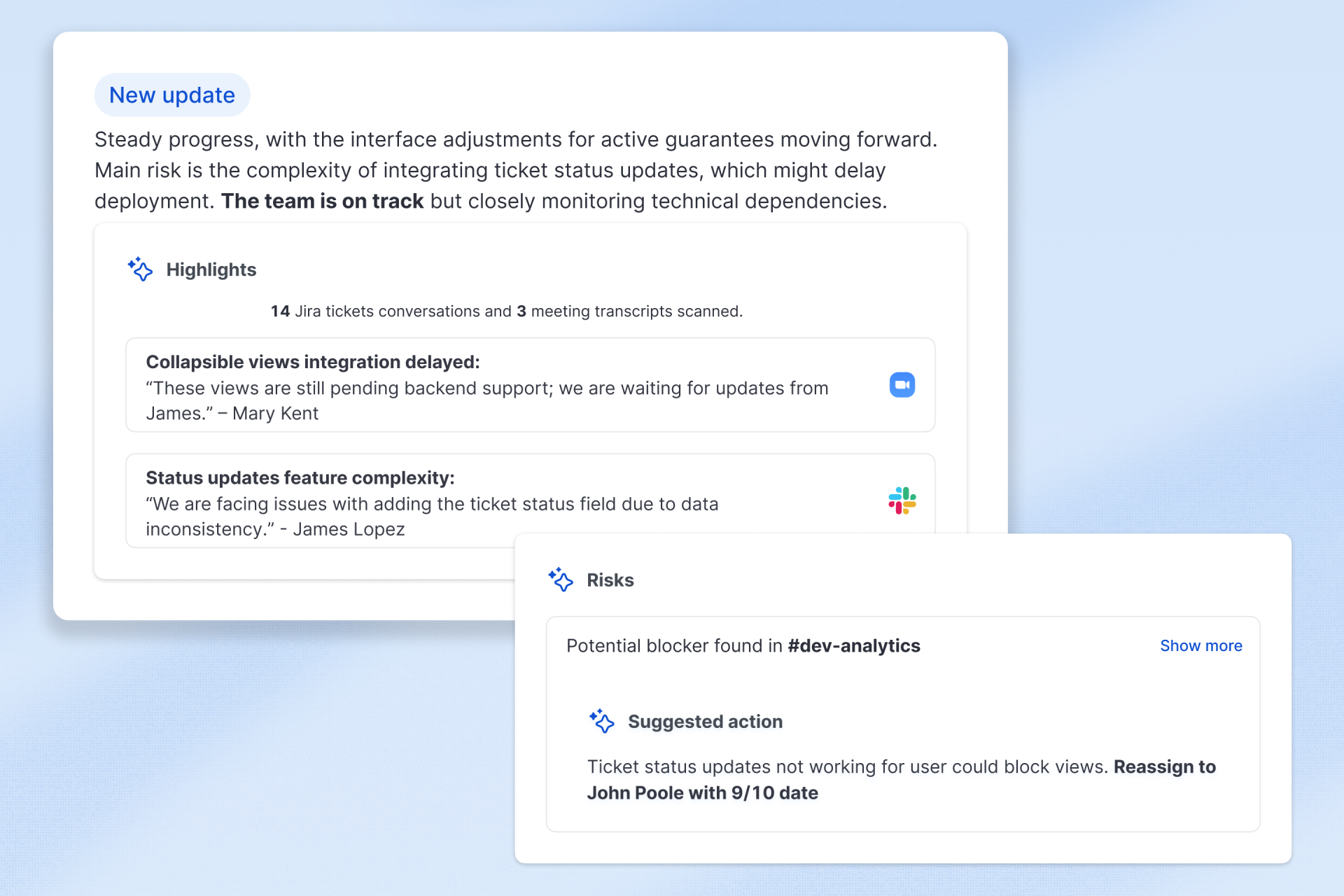 Every team member receives relevant insights in real time, reducing the need for status meetings and manual updates.