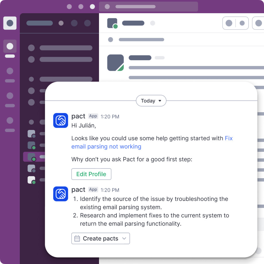 - Pact's AI doesn't just organize; it advises. It suggests next steps for each task, acting like a personal assistant in identifying your next move.