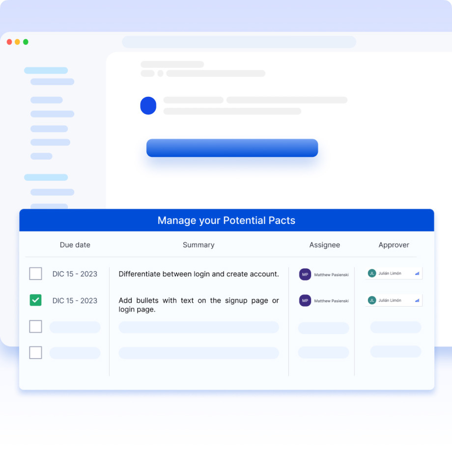 - Pact's innovative AI feature effortlessly converts your meeting transcripts into actionable items. Imagine having your meeting notes smartly organized and actionable tasks automatically generated and followed-up on.